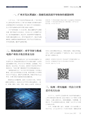 全链条布局 多区域发力 强生态培育 一、广州开发区黄浦区 :鼓励发展高端半导体和传感器材料