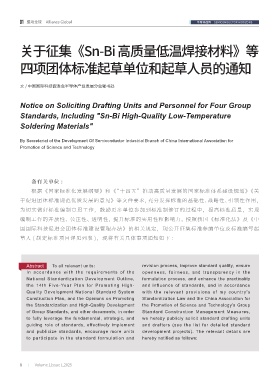 关于征集《Sn-Bi 高质量低温焊接材料》等 序号 标准名称 主编单位